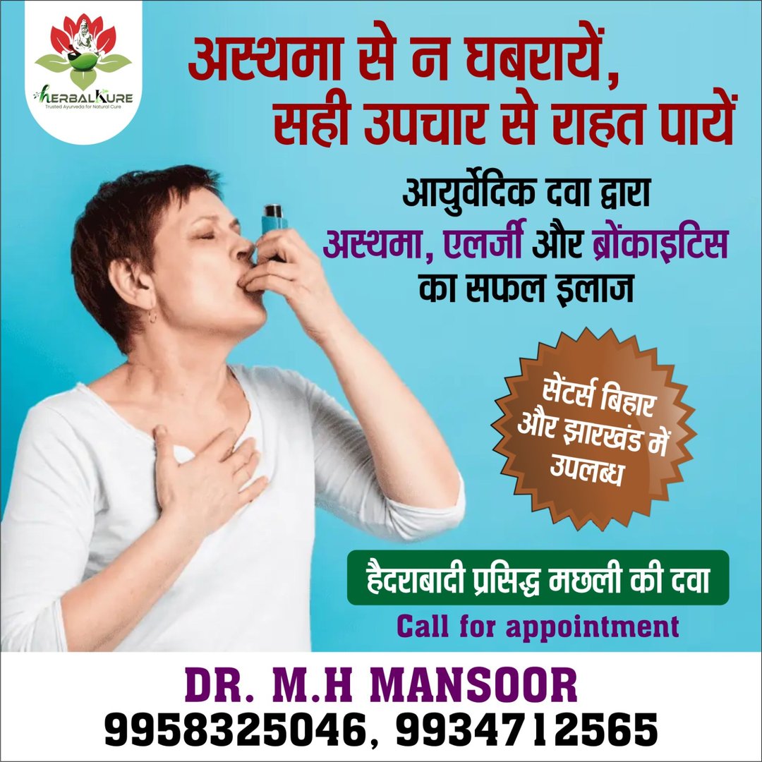 Founded in 2003, Dr. M.H. Mansoor's Ayurvedic clinic has been a trusted resource for herbal treatments for over two decades. With a focus on asthma, allergies, bronchitis, sinusitis, and eosinophilia, the clinic offers 100% herbal medicines, meticulously prepared by Dr. Mansoor himself. His extensive 25-year experience in pulmonology and traditional medicine provides a natural and safe alternative for those seeking relief. Serving patients from Delhi NCR, Bihar, and Jharkhand, the practice is renowned for its commitment to holistic well-being.